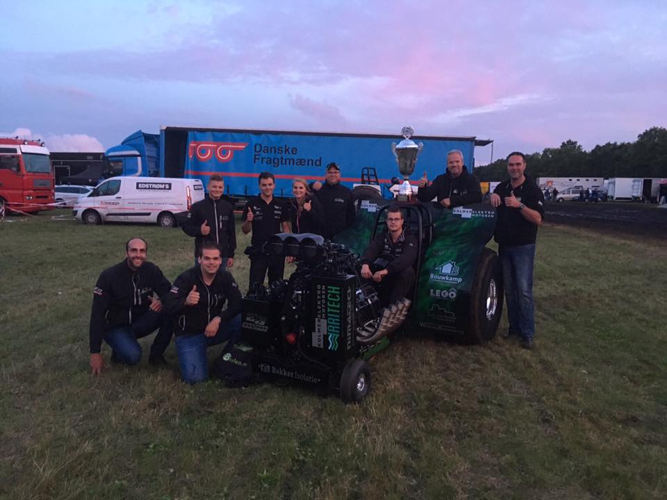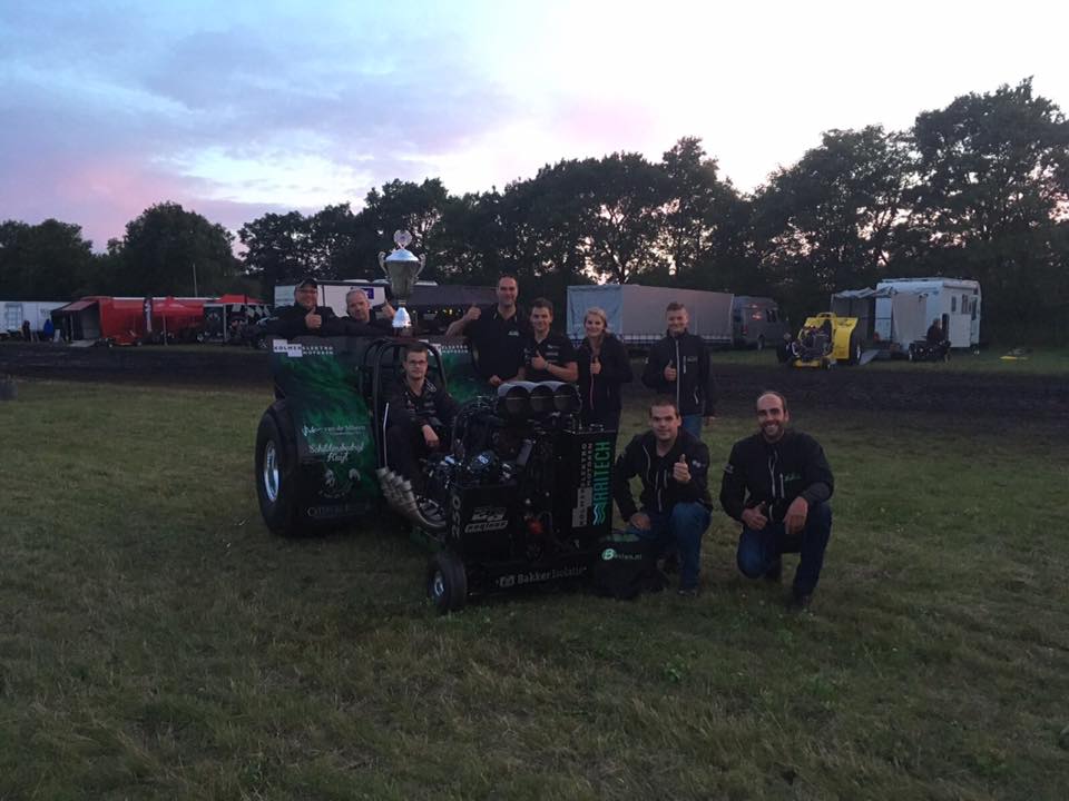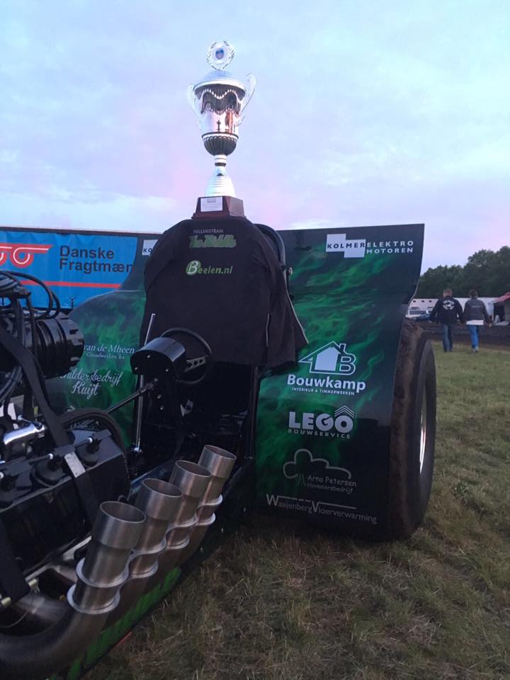 Echter, heel moeilijk zou dit niet te hoeven zijn want we hadden een dusdanige voorsprong gemaakt waardoor inhalen door de concurentie moeilijk zou worden. Echter blijkt in de praktijk wel weer dat een mechanische sport nog wel eens te wensen overlaat want het werd in Brande toch even heel spannend! Met gemak behaalden wij een full pull en kwalificeerden we ons voor de finale. Echter waren er vrij veel finalisten deze wedstrijd dus ook de finale was nog een spannende! En laat nou net het lot bepalen dat onze motor het even te kwaad kreeg en rond de 60 meter een backfire kreeg waardoor we in de achterhoede van de finalisten belandde.
